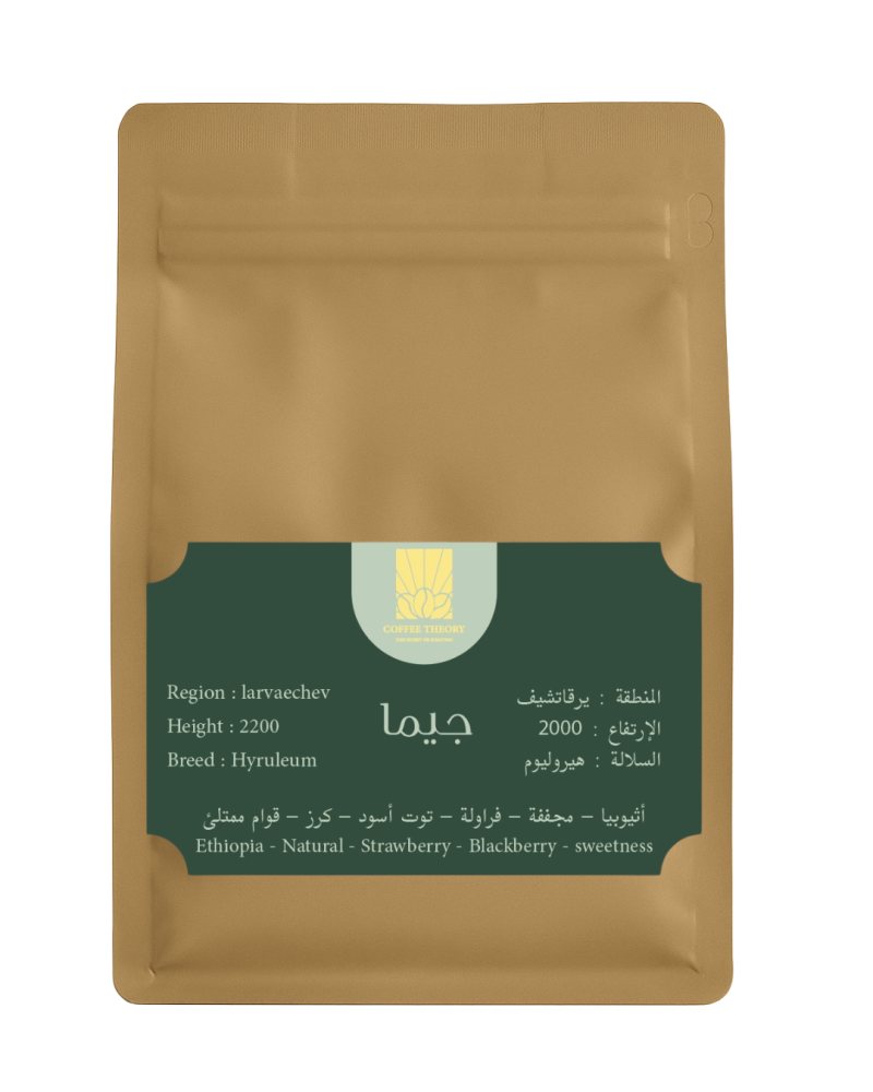 جـيـما محصول اثيوبي من منطقة يرقاتشف تمت معالجته بطريقة مجففة يتميز بنكهة فاكهية وقوام ممتلئ ، المحصول مميز بشكل كبير لمشروبات الحليب الحارة والباردة كافة ومميز ايضاً لمشروبات الفلتر بالطابع الفاكهي الكلاسيكي حيث يمكنك الاستمتاع بألذ قهوة في جميع المواسم ، حُمصت بحب في الخبر ليقدم إليكم بأفضل جودة